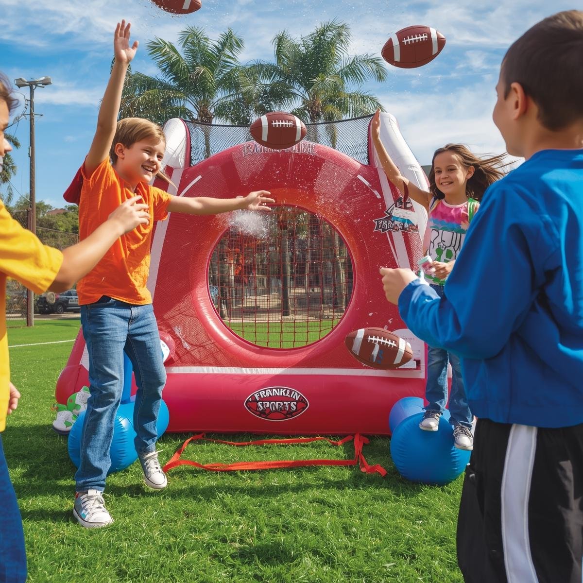 The Franklin Sports Kids Football Target Toss Game represents an engaging outdoor activity toy designed for children ages 6-12, featuring an inflatable target stand with scoring zones and included soft mini footballs for throwing practice[web:990][web:992]. The set typically includes one inflatable target measuring approximately 36-40 inches tall when fully inflated, plus 2-4 soft foam mini footballs depending on package variation[web:990]. This configuration transforms basic throwing practice into competitive scoring game that develops hand-eye coordination, throwing accuracy, and athletic fundamentals while providing entertaining outdoor activity that encourages physical play away from screens[web:990]. The $20-35 pricing positions it as affordable backyard entertainment option for families seeking active play equipment that promotes skill development alongside fun.